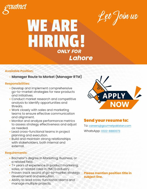 GourmetPakistan GourmetFoods Hiring Joinnow Apply Applynow RTM